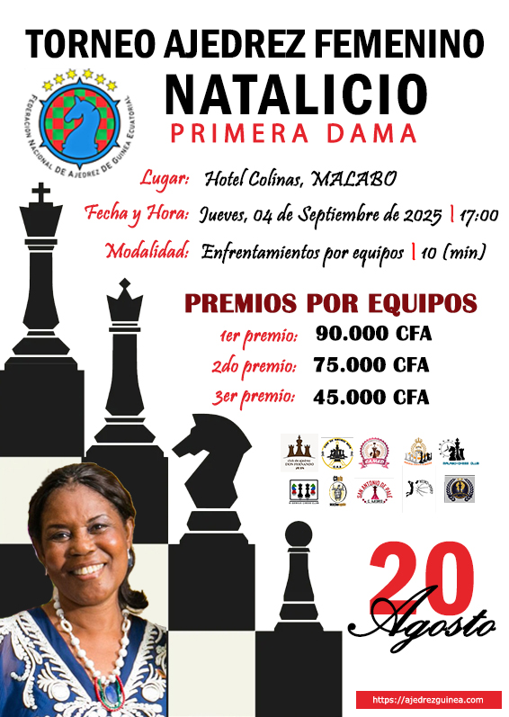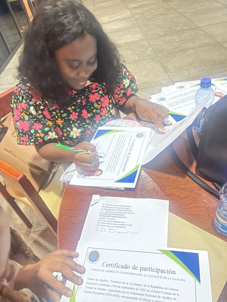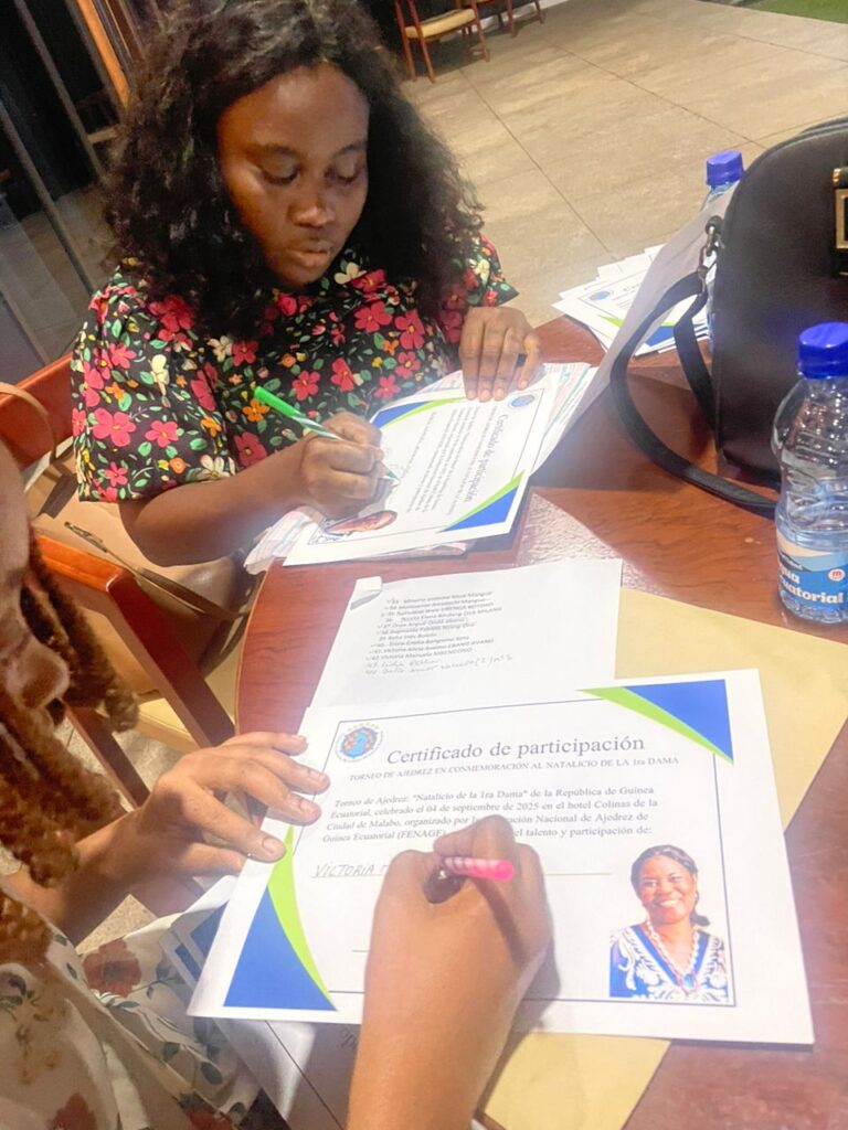 En la tarde del jueves 04 de septiembre de 2025, en el Hotel Colinas, ubicado en la Ciudad de Malabo, por motivo del natalicio de la 1ra Dama, se ha planificado un evento de ajedrez para celebrar este día.
