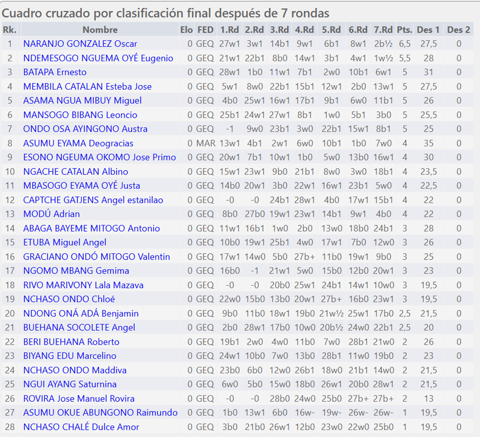 • Total de participantes: 28 jugadores (21 hombres, 7 mujeres).