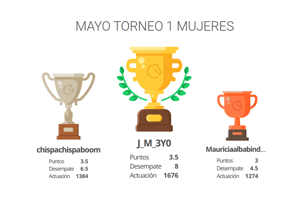 El primer torneo del mes de mayo se realizó el día 3 de mayo de 2025, hora de inicio: 17:00. Participaron un total de 7 jugadoras. El sistema de competición: Sistema suizo a 5 rondas con una cadencia de 3 minutos más 2 segundos de incrementos.