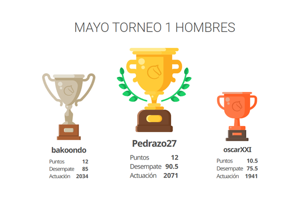 El primer torneo del mes de mayo se realizó el día 3 de mayo de 2025, hora de inicio: 17:00. Participaron un total de 26 jugadores. El sistema de competición: Sistema suizo a 14 rondas con una cadencia de 3 minutos más 2 segundos de incrementos.